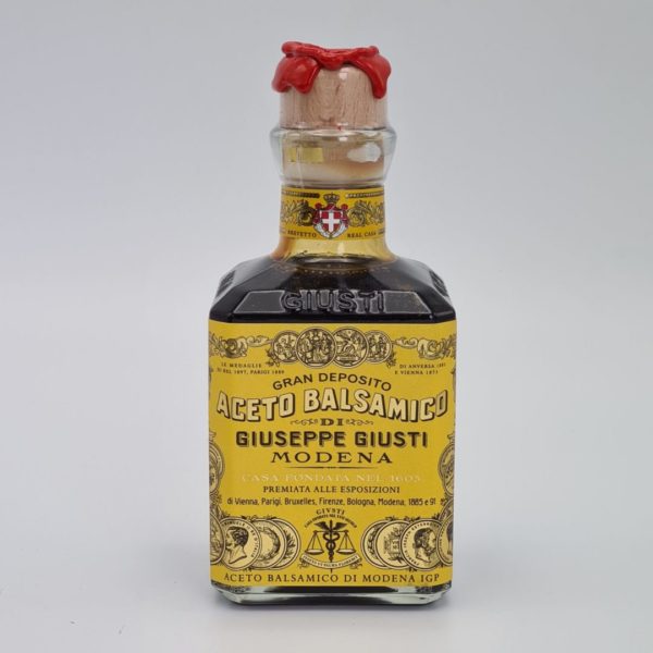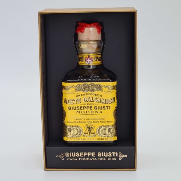 Deze Balsamico di Modena van Giuseppe Giusti is 15 jaar oud en voorzien van 4 munten. Het is pure Balsamico van druivenmost zonder enige toevoegingen.  Zowel de verpakking als het ontwerp van de fles maken het een prachtig geschenk voor een echte liefhebber van de Italiaanse keuken.