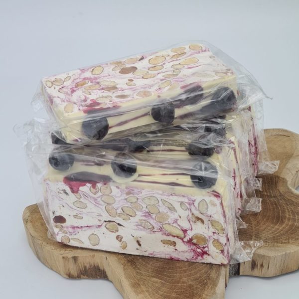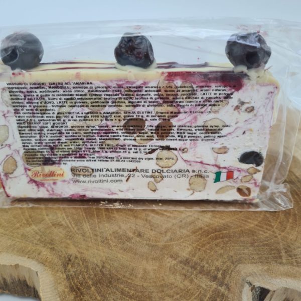 Torrone Tenero, is Italiaanse zachte nougat. Een heerlijke zoete lekkernij die in allerlei smaken te verkrijgen is. Deze fijne nougat komt uit de regio Cremona tussen Milaan en Bologna. De smaak is echt heerlijk, de combinatie van de zachte nougat, de volle kersen smaak en hele amandelen is een klassieker. De stukken wegen 150 gr en zijn individueel verpakt. De Torrone Tenero kersen wordt overigens traditioneel met de hand gemaakt.